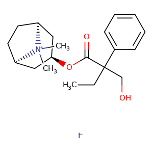 | 异名/同义词 | (1R,3R,5S)-3-(((2RS)-2-(HYDROXYMETHYL)- 2-PHENYLBUTANOYL)OXY)-8,8-DIMETHYL- 8-AZABICYCLO(3.2.1)OCTANIUM IODIDE (3-ENDO)-3-(2-(HYDROXYMETHYL)-1-OXO-2-PHENYLBUTOXY)-8,8-DIMETHYL-8-AZONIABICYCLO(3.2.1)OCTANE IODIDE (1:1) 8-AZONIABICYCLO(3.2.1)OCTANE, 3-(2-(HYDROXYMETHYL)-1-OXO-2-PHENYLBUTOXY)-8,8-DIMETHYL-, IODIDE (1:1), (3-ENDO) ILMETROPIUM IODIDE TROVENTOL [WHO-DD] ILMETROPIUM IODIDE [INN]