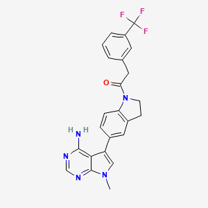 | 异名/同义词 | 1-(5-(4-AMINO-7-METHYL-7H-PYRROLO(2,3-D)PYRIMIDIN-5-YL)-2,3-DIHYDRO-1H-INDOL-1-YL)-2-(3-(TRIFLUOROMETHYL)PHENYL)ETHANONE 1-(5-(4-AMINO-7-METHYLPYRROLO(2,3-D)PYRIMIDIN-5-YL)-2,3-DIHYDROINDOL-1-YL)-2-(3-(TRIFLUOROMETHYL)PHENYL)ETHANONE 7-METHYL-5-(1-((3-(TRIFLUOROMETHYL)PHENYL)ACETYL)-2,3-DIHYDRO-1H-INDOL-5-YL)-7H-PYRROLO(2,3-D)PYRIMIDIN-4-AMINE ETHANONE, 1-(5-(4-AMINO-7-METHYL-7H-PYRROLO(2,3-D)PYRIMIDIN-5-YL)-2,3-DIHYDRO-1H-INDOL-1-YL)-2-(3-(TRIFLUOROMETHYL)PHENYL)- GSK-2606414 GSK2606414