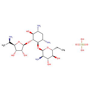 | 异名/同义词 | 6'-(R)-METHYL-5-O-(5-AMINO-5,6-DIDEOXY-A-L-TALOFURANOSYL)- PAROMAMINE SULFATE 6'-(R)-METHYL-5-O-(5-AMINO-5,6-DIDEOXY-ALPHA-L-TALOFURANOSYL)-PAROMAMINE SULFATE D-STREPTAMINE, O-5-AMINO-5,6-DIDEOXY-.BETA.-D-ALLOFURANOSYL-(1->5)-O-(2-AMINO-2,7-DIDEOXY-D-GLYCERO-.ALPHA.-D-GLUCO-HEPTOPYRANOSYL-(1->4))-2-DEOXY-, SULFATE ELX-02 SULFATE EXALUREN DISULFATE EXALUREN SULFATE NB-124 SULFATE