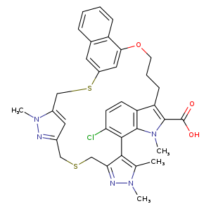 c1c(c-2c3c(c1)c(c(n3C)C(=O)O)CCCOc4cc(cc5c4cccc5)SCc6cc(nn6C)CSCc7nn(c(c27)C)C)Cl