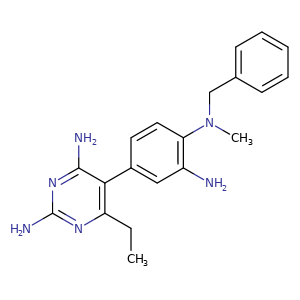 | SMILES | n1c(c(-c2cc(N)c(cc2)N(Cc3ccccc3)C)c(nc1N)CC)N |