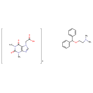 | SMILES | CN(C)CCOC(c1ccccc1)c2ccccc2.O=c1c2n(CC(O)=O)cnc2n(C)c(=O)n1C.O=c1c2n(CC(O)=O)cnc2n(C)c(=O)n1C |
