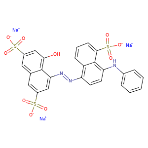 | SMILES | c1(c2c(cc(c1)S([O-])(=O)=O)cc(cc2O)S([O-])(=O)=O)/N=N/c3ccc(c4c3cccc4S([O-])(=O)=O)Nc5ccccc5.[Na+].[Na+].[Na+] |