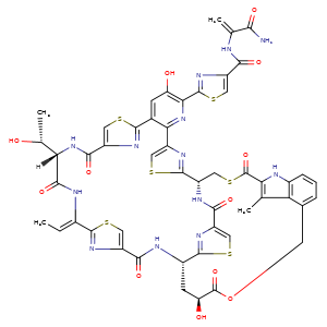 | SMILES | c1\2nc(cs1)C(N[C@@H]3c4scc(C(N[C@H](c5scc(-c6c(cc(O)c(n6)-c7nc(cs7)C(=O)NC(=C)C(N)=O)-c8nc(cs8)C(N[C@@]([C@H](O)C)(C(=O)N/C2=C\C)[H])=O)n5)CSC(c9c(c%10c([nH]9)cccc%10COC([C@H](C3)O)=O)C)=O)=O)n4)=O |