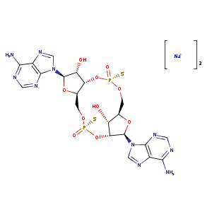| SMILES | n1(c2ncnc(c2nc1)N)[C@@H]3O[C@@H]4CO[P@](O[C@@H]5[C@@H](CO[P@@]([S-])(O[C@@H]3[C@@H]4O)=O)O[C@H]([C@@H]5O)n6cnc7c(ncnc76)N)([S-])=O.[Na+].[Na+] |