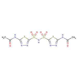 | 异名/同义词 | ACETAZOLAMIDE DIMER [USP IMPURITY] ACETAZOLAMIDE IMPURITY F [EP IMPURITY] BIS(5-(ACETYLAMINO)-1,3,4-THIADIAZOLE-2-SULFONYL)AMINE N,N'-(5,5'-((HYDROSULFONYLAMINO)SULFONYL)BIS(1,3,4-THIADIAZOLE-5,2-DIYL))DIACETAMIDE N,N'-(IMINOBIS(SULFONYL-1,3,4-THIADIAZOLE-5,2-DIYL))BISACETAMIDE N-(5-((5-ACETAMIDO-1,3,4-THIADIAZOL-2-YL)SULFONYL)SULFAMOYL-1,3,4-THIADIAZOL-2-YL)ACETAMIDE ACETAMIDE, N,N'-(IMINOBIS(SULFONYL-1,3,4-THIADIAZOLE-5,2-DIYL))BIS-