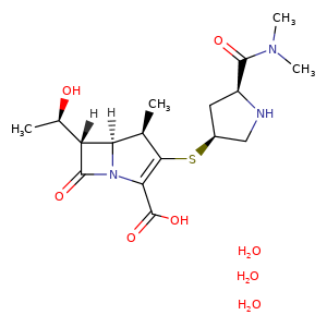 | SMILES | C(N(C)C)(=O)[C@H]1NC[C@H](C1)SC=2[C@H](C)[C@@]3([H])N(C2C(=O)O)C(=O)[C@@]3([C@H](O)C)[H].O.O.O |