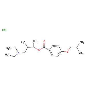 | 异名/同义词 | .ALPHA.,.BETA.-DIMETHYL-.GAMMA.-(DIETHYLAMINO)PROPYL P-ISOBUTOXYBENZOATE HYDROCHLORIDE 2-BUTANOL, 4-(DIETHYLAMINO)-3-METHYL-, P-ISOBUTOXYBENZOATE (ESTER), HYDROCHLORIDE 3-DIETHYLAMINO-1,2-DIMETHYLPROPYL P-ISOBUTOXYBENZOATE HYDROCHLORIDE BENZOIC ACID, 4-(2-METHYLPROPOXY)-, 3-(DIETHYLAMINO)-1,2-DIMETHYLPROPYL ESTER, HYDROCHLORIDE BENZOIC ACID, 4-(2-METHYLPROPOXY)-, 3-(DIETHYLAMINO)-1,2-DIMETHYLPROPYL ESTER, HYDROCHLORIDE (1:1) BENZOIC ACID, P-ISOBUTOXY-, 3-(DIETHYLAMINO)-1,2-DIMETHYLPROPYL ESTER HYDROCHLORIDE GANGLEFENE HYDROCHLORIDE GANGLERON GANGLERON HYDROCHLORIDE GANGLERONE GANGLEXON HYDROCHLORIDE GANGLEFENE HYDROCHLORIDE [WHO-DD] OXYCAINE 12