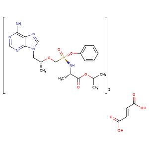 | SMILES | C(=O)(OC(C)C)[C@H](C)N[P@@](=O)(Oc1ccccc1)CO[C@H](C)Cn2cnc3c2ncnc3N.C(=C/C(=O)O)\C(=O)O.C(=O)(OC(C)C)[C@H](C)N[P@@](=O)(Oc1ccccc1)CO[C@H](C)Cn2cnc3c2ncnc3N |