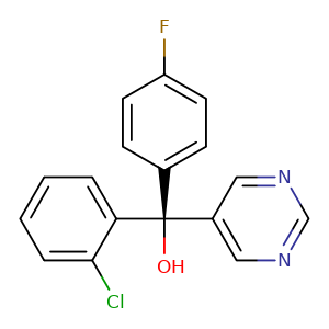 [C@@](O)(c1cncnc1)(c2ccccc2Cl)c3ccc(F)cc3