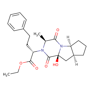 | 异名/同义词 | 2H-CYCLOPENTA(4,5)PYRROLO(1,2-A)PYRAZINE-2-ACETIC ACID, DECAHYDRO-9A-HYDROXY-3-METHYL-1,4-DIOXO-.ALPHA.-(2-PHENYLETHYL)-, ETHYL ESTER, (.ALPHA.S,3S,5AS,8AS,9AS)- ETHYL (2S)-2-((3S,5AS,8AS,9AS)-9A-HYDROXY-3-METHYL-1,4-DIOXODECAHYDRO-2H-CYCLOPENTA(4,5)PYRROLO(1,2-A)PYRAZIN-2-YL)-4-PHENYLBUTANOATE RAMIPRIL HYDROXYDIKETOPIPERAZINE RAMIPRIL IMPURITY L [EP IMPURITY]