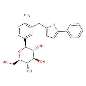 | SMILES | c1cc(cc(c1C)Cc2ccc(s2)-c3ccccc3)[C@@H]4O[C@@H]([C@H]([C@@H]([C@H]4O)O)O)CO |