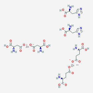 [Zn+2].N[C@H](C(O)=O)Cc1nc[nH]c1.N[C@H](C(O)=O)CCC(=O)[O-].N[C@H](C(O)=O)CC([O-])=O.[Zn+2].N[C@H](C(O)=O)Cc1nc[nH]c1.N[C@H](C(O)=O)CCC(=O)[O-].N[C@H](C(O)=O)CC([O-])=O