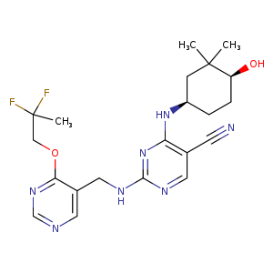 | SMILES | n1cncc(CNc2ncc(C#N)c(N[C@@H]3CC[C@H](O)C(C)(C)C3)n2)c1OCC(C)(F)F |