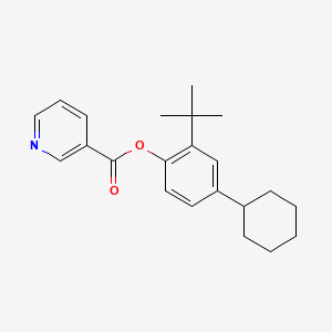 | 异名/同义词 | 2-TERT-BUTYL-4-CYCLOHEXYLPHENYL NICOTINATE 3-PYRIDINECARBOXYLIC ACID, 4-CYCLOHEXYL-2-(1,1-DIMETHYLETHYL)PHENYL ESTER 4-CYCLOHEXYL-2-(1,1-DIMETHYLETHYL)PHENYL 3-PYRIDINECARBOXYLATE |