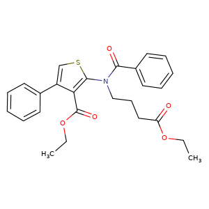 | SMILES | c1(c(c(-c2ccccc2)cs1)C(=O)OCC)N(C(=O)c3ccccc3)CCCC(=O)OCC |