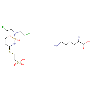 | SMILES | C(O)(=O)[C@@H](N)CCCCN.ClCCN(CCCl)[P@@]1(=O)OCC[C@H](SCCS(=O)(=O)O)N1 |