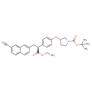 | SMILES | CCOC(=O)[C@H](c1ccc(O[C@@H]2CN(C(OC(C)(C)C)=O)CC2)cc1)Cc3cc4c(ccc(c4)C#N)cc3 |