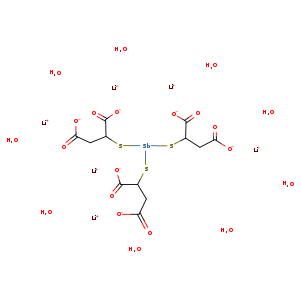 | SMILES | C(C([O-])=O)([S-])CC(=O)[O-].[Sb+3].[Li+].O.C(C([O-])=O)([S-])CC(=O)[O-].C(C([O-])=O)([S-])CC(=O)[O-].[Li+].[Li+].[Li+].[Li+].[Li+].O.O.O.O.O.O.O.O |