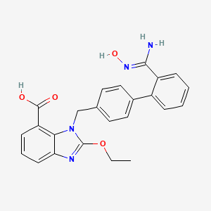 | 异名/同义词 | 1H-BENZIMIDAZOLE-7-CARBOXYLIC ACID, 2-ETHOXY-1-((2'-((HYDROXYAMINO)IMINOMETHYL)(1,1'-BIPHENYL)-4-YL)METHYL)- 2-ETHOXY-1-((2'-(N'-HYDROXYCARBAMIMIDOYL)BIPHENYL-4-YL)METHYL)-1H-BENZIMIDAZOLE-7-CARBOXYLIC ACID 2-ETHOXY-1-((2'-((HYDROXYAMINO)IMINOMETHYL)(1,1'-BIPHENYL)-4-YL)METHYL)-1H-BENZIMIDAZOLE-7-CARBOXYLIC ACID AZILSARTAN HYDROXY ACID