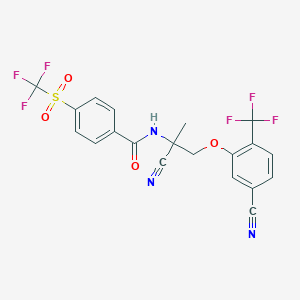 | SMILES | O(CC(NC(=O)c1ccc(S(C(F)(F)F)(=O)=O)cc1)(C#N)C)c2c(C(F)(F)F)ccc(C#N)c2 |