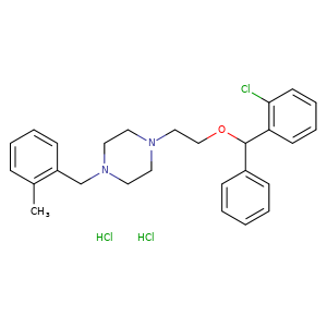 | SMILES | c1cc(C(c2ccccc2Cl)OCCN3CCN(CC3)Cc4ccccc4C)ccc1.Cl.Cl |