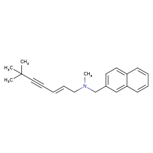 | 异名/同义词 | (2E)-N,6,6-TRIMETHYL-N-(NAPHTHALEN-2-YLMETHYL)HEPT-2-EN-4-YN-1-AMINE 2-NAPHTHALENEMETHANAMINE, N-((2E)-6,6-DIMETHYL-2-HEPTEN-4-YN-1-YL)-N-METHYL- ISOTERBINAFINE, (E)- TERBINAFINE HYDROCHLORIDE IMPURITY C [EP IMPURITY] TERBINAFINE HYDROCHLORIDE IMPURITY, TRANS-ISOTERBINAFINE- [USP IMPURITY] TERBINAFINE RELATED COMPOUND C FREE BASE TRANS-ISOTERBINAFINE
