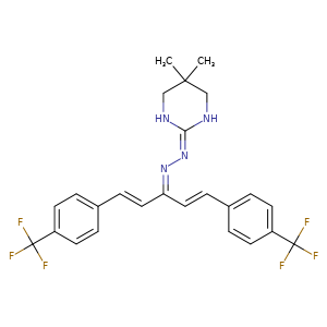 | SMILES | C(c1ccc(/C=C/C(=NN=C2NCC(C)(C)CN2)/C=C/c3ccc(C(F)(F)F)cc3)cc1)(F)(F)F |