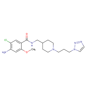 | 异名/同义词 | 4-AMINO-5-CHLORO-2-METHOXY-N-((1-(3-(1H-1,2,3-TRIAZOL-1-YL)PROPYL)-4-PIPERIDINYL)METHYL)BENZAMIDE 4-AMINO-5-CHLORO-2-METHOXY-N-((1-(3-(TRIAZOL-1-YL)PROPYL)-4-PIPERIDYL)METHYL)BENZAMIDE BENZAMIDE, 4-AMINO-5-CHLORO-2-METHOXY-N-((1-(3-(1H-1,2,3-TRIAZOL-1-YL)PROPYL)-4-PIPERIDINYL)METHYL)- DA-6886