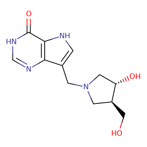 | 异名/同义词 | 4H-PYRROLO(3,2-D)PYRIMIDIN-4-ONE, 1,5-DIHYDRO-7-(((3R,4R)-3-HYDROXY-4-(HYDROXYMETHYL)-1-PYRROLIDINYL)METHYL)- 7-(((3R,4R)-3-HYDROXY-4-(HYDROXYMETHYL)PYRROLIDIN-1-YL)METHYL(-1,5-DIHYDRO-4H-PYRROLO(3,2-D)PYRIMIDIN-4-ONE 7-(((3R,4R)-3-HYDROXY-4-(HYDROXYMETHYL)PYRROLIDIN-1-YL)METHYL)-3,5-DIHYDRO-4H-PYRROLO(3,2-D)PYRIMIDIN-4-ONE BCX-4208 BCX4208 DADME-IMMUCILLIN H LR-09 R-3421 ULODESINE ULODESINE [USAN] ULODESINE [WHO-DD] ULODESINE [INN]