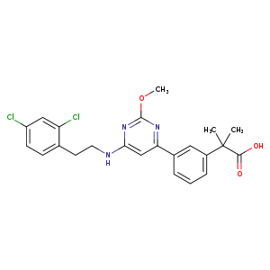 c1(cccc(-c2nc(nc(c2)NCCc3c(cc(cc3)Cl)Cl)OC)c1)C(C(=O)O)(C)C