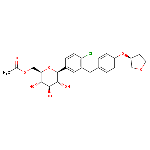 [C@H]1([C@H]([C@@H]([C@H]([C@@H](O1)c2cc(c(cc2)Cl)Cc3ccc(cc3)O[C@@H]4COCC4)O)O)O)COC(C)=O