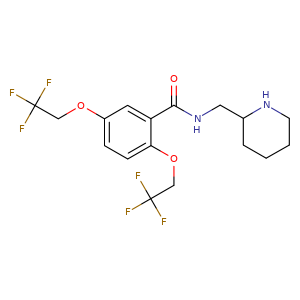 | SMILES | c1(C(NCC2NCCCC2)=O)c(OCC(F)(F)F)ccc(c1)OCC(F)(F)F |