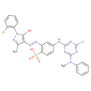 | SMILES | Oc1c(/N=N/c2cc(Nc3nc(Cl)nc(N(c4ccccc4)C)n3)ccc2S(O)(=O)=O)c(C)nn1-c5ccccc5Cl |