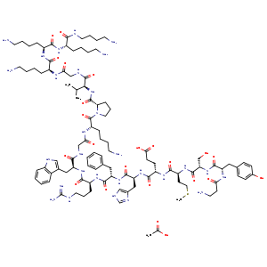 | SMILES | C([C@H](NC([C@@H](NC([C@H](Cc1ccccc1)NC([C@H](Cc2c[nH]cn2)NC([C@@H](NC([C@@H](NC([C@@H](NC([C@H](Cc3ccc(cc3)O)NC(CCN)=O)=O)CO)=O)CCSC)=O)CCC(O)=O)=O)=O)=O)CCCNC(=N)N)=O)C(NCC(N[C@H](C(=O)N4[C@H](C(N[C@H](C(NCC(N[C@H](C(N[C@H](C(N[C@H](C(NCCCCN)=O)CCCCN)=O)CCCCN)=O)CCCCN)=O)=O)C(C)C)=O)CCC4)CCCCN)=O)=O)c5c6c([nH]c5)cccc6.CC(=O)O |