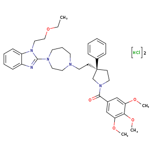 | 异名/同义词 | (+)-MDL-108207DA MDL-108207DA MDL108207DA METHANONE, ((3R)-3-(2-(4-(1-(2-ETHOXYETHYL)-1H-BENZIMIDAZOL-2-YL)HEXAHYDRO-1H-1,4-DIAZEPIN-1-YL)ETHYL)-3-PHENYL-1-PYRROLIDINYL)(3,4,5-TRIMETHOXYPHENYL)-, HYDROCHLORIDE (1:2) PYRROLIDINE, 3-(2-(4-(1-(2-ETHOXYETHYL)-1H-BENZIMIDAZOL-2-YL)HEXAHYDRO-1H-1,4-DIAZEPIN-1-YL)ETHYL)-3-PHENYL-1-(3,4,5-TRIMETHOXYBENZOYL)-, DIHYDROCHLORIDE, (R)-