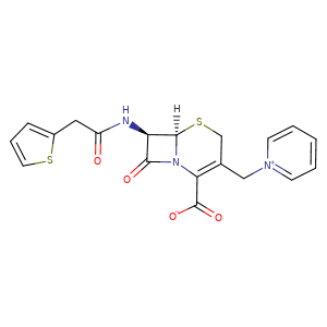 | SMILES | N12C(=O)[C@H]([C@]1(SCC(=C2C([O-])=O)C[n+]3ccccc3)[H])NC(Cc4sccc4)=O |