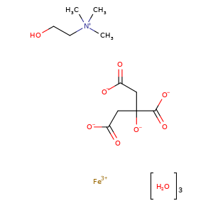 | SMILES | C([O-])(CC([O-])=O)(CC([O-])=O)C([O-])=O.[N+](CCO)(C)(C)C.[Fe+3].O.O.O |