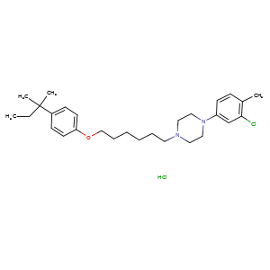 | SMILES | N1(CCN(CC1)CCCCCCOc2ccc(C(C)(C)CC)cc2)c3cc(Cl)c(cc3)C.Cl |