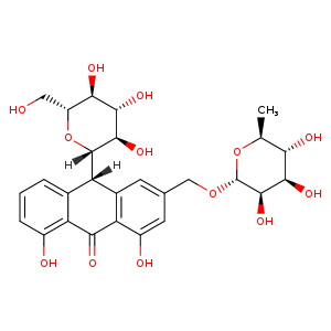 | 异名/同义词 | (10S)-1,8-DIHYDROXY-10-((2S,3R,4R,5S,6R)-3,4,5-TRIHYDROXY-6-(HYDROXYMETHYL)OXAN-2-YL)-3-(((2R,3R,4R,5R,6S)-3,4,5-TRIHYDROXY-6-METHYLOXAN-2-YL)OXYMETHYL)-10H-ANTHRACEN-9-ONE (10S)-3-(((6-DEOXY-.ALPHA.-L-MANNOPYRANOSYL)OXY)METHYL)-10-.BETA.-D-GLUCOPYRANOSYL-1,8-DIHYDROXY-9(10H)-ANTHRACENONE 9(10H)-ANTHRACENONE, 3-(((6-DEOXY-.ALPHA.-L-MANNOPYRANOSYL)OXY)METHYL)-10-.BETA.-D-GLUCOPYRANOSYL-1,8-DIHYDROXY-, (10S)- ALOINOSIDE ALOINOSIDE A