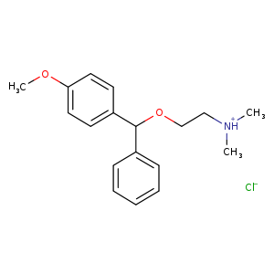 | 异名/同义词 | 2-((4-METHOXYPHENYL)(PHENYL)METHOXY)-N,N-DIMETHYLETHAN-1-AMINE HYDROCHLORIDE 2-((P-METHOXY-ALPHA-PHENYLBENZYL)OXY)ETHYL(DIMETHYL)AMMONIUM CHLORIDE ETHANAMINE, 2-((4-METHOXYPHENYL)PHENYLMETHOXY)-N,N-DIMETHYL-, HYDROCHLORIDE ETHANAMINE, 2-((4-METHOXYPHENYL)PHENYLMETHOXY)-N,N-DIMETHYL-, HYDROCHLORIDE (1:1) ETHYLAMINE, 2-((P-METHOXY-.ALPHA.-PHENYLBENZYL)OXY)-N,N-DIMETHYL-, HYDROCHLORIDE MEDRYLAMINE HYDROCHLORIDE