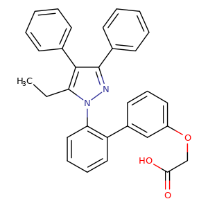 | 异名/同义词 | ((2'-(5-ETHYL-3,4-DIPHENYL-1H-PYRAZOL-1-YL)-1,1'-BIPHENYL-3-YL)OXY)ACETIC ACID 2-((2'-(5-ETHYL-3,4-DIPHENYL-1H-PYRAZOL-1-YL)(1,1'-BIPHENYL)-3-YL)OXY)-ACETIC ACID ACETIC ACID, ((2'-(5-ETHYL-3,4-DIPHENYL-1H-PYRAZOL-1-YL)(1,1'-BIPHENYL)-3-YL)OXY)- ACETIC ACID, 2-((2'-(5-ETHYL-3,4-DIPHENYL-1H-PYRAZOL-1-YL)(1,1'-BIPHENYL)-3-YL)OXY)- BMS-309403