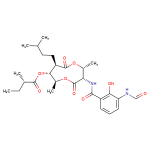 C(CC(C)C)[C@@H]1[C@@H](OC([C@H](CC)C)=O)[C@H](C)OC([C@H]([C@H](OC1=O)C)NC(=O)c2c(O)c(NC=O)ccc2)=O / INGREDIENT SUBSTANCE