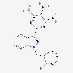 | 异名/同义词 | 2-(1-(2-FLUOROBENZYL)-1H-PYRAZOLO(3,4-B)PYRIDIN-3-YL)PYRIMIDINE-4,5,6-TRIAMINE 2-(1-((2-FLUOROPHENYL)METHYL)-1H-PYRAZOLO(3,4-B)PYRIDIN-3-YL)-4,5,6-PYRIMIDINETRIAMINE 2-(1-((2-FLUOROPHENYL)METHYL)PYRAZOLO(3,4-B)PYRIDIN-3-YL)PYRIMIDINE-4,5,6-TRIAMINE 4,5,6-PYRIMIDINETRIAMINE, 2-(1-((2-FLUOROPHENYL)METHYL)-1H-PYRAZOLO(3,4-B)PYRIDIN-3-YL)-