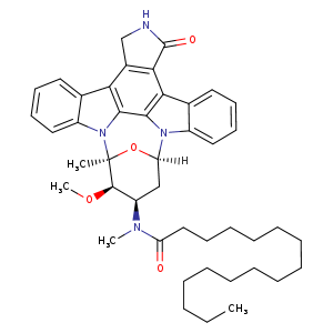 | 异名/同义词 | HEXADECANAMIDE, N-((9S,10R,11R,13R)-2,3,10,11,12,13-HEXAHYDROGEN-10-METHOXY-9-METHYL-1-OXO-9,13-EPOXY-1H,9H-DIINDOLO(1,2,3-GH:3',2',1'-LM)PYRROLO(3,4-J)(1,7)BENZODIAZONIN-11-YL)-N-METHYL- N-((5S,6R,7R,9R)-6-METHOXY-5-METHYL-14-OXO-6,7,8,9,15,16-HEXAHYDRO-5H,14H-17-OXA-4B,9A,15-TRIAZA-5,9-METHANODIBENZO(B,H)CYCLONONA(JKL)CYCLOPENTA(E)-AS-INDACEN-7-YL)-N-METHYLPALMITAMIDE PALMITOYLSTAUROSPORINE