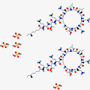 N(C(=O)[C@@](NC(=O)[C@@H](NC(CCCC[C@@H](C)CC)=O)CCN)([C@H](O)C)[H])[C@H](C(=O)N[C@@H]1C(=O)N[C@H](C(=O)N[C@H](CC(C)C)C(N[C@H](C(N[C@H](C(N[C@H](C(N[C@]([C@@H](C)O)([H])C(NCC1)=O)=O)CCN)=O)CCN)=O)CC(C)C)=O)CCN)CCN.OS(=O)(O)=O.N(C(=O)[C@@](NC(=O)[C@@H](NC(CCCC[C@@H](C)CC)=O)CCN)([C@H](O)C)[H])[C@H](C(=O)N[C@@H]1C(=O)N[C@H](C(=O)N[C@H](CC(C)C)C(=O)N[C@H](C(N[C@H](C(N[C@H](C(N[C@](C(NCC1)=O)([C@@H](C)O)[H])=O)CCN)=O)CCN)=O)CC(C)C)CCN)CCN.OS(=O)(O)=O.OS(=O)(O)=O.OS(=O)(O)=O.OS(=O)(O)=O