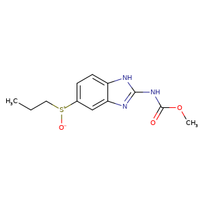 | 异名/同义词 | (+)-(R)-ALBENDAZOLE SULFOXIDE (+)-ALBENDAZOLE SULFOXIDE ALBENDAZOLE OXIDE, (R)- CARBAMIC ACID, (5-(PROPYLSULFINYL)-1H-BENZIMIDAZOL-2-YL)-, METHYL ESTER, (+)- CARBAMIC ACID, N-(6-((R)-PROPYLSULFINYL)-1H-BENZIMIDAZOL-2-YL)-, METHYL ESTER CARBAMIC ACID, N-(6-(PROPYLSULFINYL)-1H-BENZIMIDAZOL-2-YL)-, METHYL ESTER, (+)- R-RICOBENDAZOLE