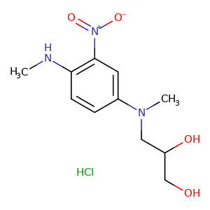 | 异名/同义词 | (+/-)-HC BLUE NO. 6 1,2-PROPANEDIOL, 3-(METHYL(4-(METHYLAMINO)-3-NITROPHENYL)AMINO)-, HYDROCHLORIDE (1:1) 1,2-PROPANEDIOL, 3-(METHYL(4-(METHYLAMINO)-3-NITROPHENYL)AMINO)-, MONOHYDROCHLORIDE 1- METHYLAMINO- 2- NITRO- 4- (METHYL- 2, 3- DIHYDROXYPROPYL) AMINOBENZENE HYDROCHLORIDE HC BLUE #6 HC BLUE NO. 6 IMEXINE FAE