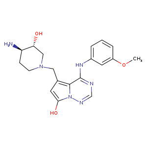 | SMILES | [C@H]1(CCN(Cc2cc(n3ncnc(c23)Nc4cccc(c4)OC)O)C[C@H]1O)N |