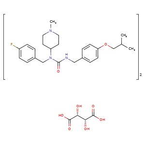 | SMILES | c1(ccc(cc1)F)CN(C2CCN(CC2)C)C(=O)NCc3ccc(OCC(C)C)cc3.OC(=O)[C@@H]([C@H](C(O)=O)O)O.c1(ccc(cc1)F)CN(C2CCN(CC2)C)C(=O)NCc3ccc(cc3)OCC(C)C |